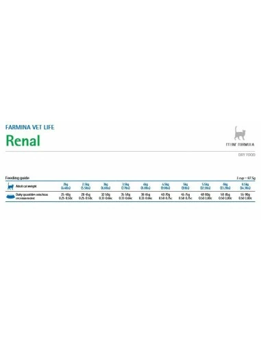 Farmina Vet Life Renal è un alimento dietetico completo per gatti, indicato per il supporto della funzione renale in caso di insufficienza renale cronica o temporanea. Questo alimento dietetico ha basse concentrazioni di fosforo e ridotto tenore di proteine ma di elevata qualità. Meccanismo dazione: Il basso tenore in proteine e fosforo riduce i sintomi riconducibili all’insufficienza renale, migliorando lo stato di salute del gatto.
