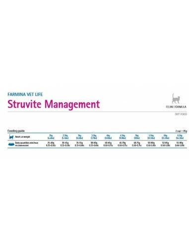 Farmina Vet Life Struvite Management feline formula è un alimento dietetico completo indicato per la gestione delle recidive di uroliti da struvite e per il trattamento delle cistiti idiopatiche. Meccanismo dazione: Le basse concentrazioni di proteine, fosforo e magnesio generano un ambiente sfavorevole allaggregazione e alla precipitazione di cristalli da struvite. Lazione acidificante della DL-Metionina e del cloruro di ammonio mantengono un pH urinario lievemente acido, inibendo la formazione di cristalli e la proliferazione batterica. Tali condizioni rendono il prodotto utile anche nel trattamento delle cistiti idiopatiche.