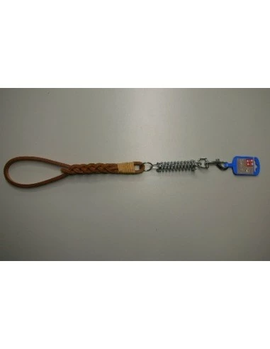 manigliotto in cuoi intrecciato . con molla ammortizzatore . indicato per cani taglia medio grande . dimensioni: lunghezza cm 55