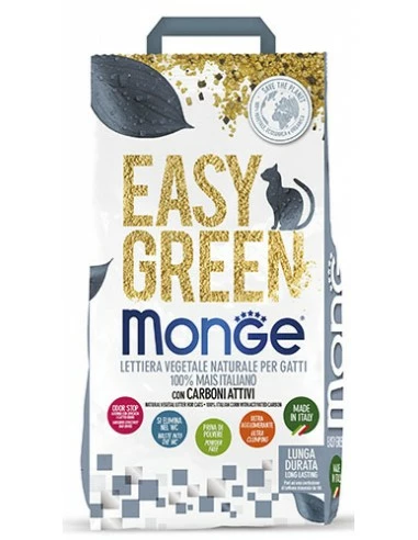 Monge Lettiera Vegetale Easy Green Mais Con Carboni attivi lt 10 kg 3,8. Lettiera Per Gatti. Easy Green è una lettiera 100% ecologica e biodegradabile, composta da mais esclusivamente italiano, potenziata con l’aggiunta di carboni attivi vegetali che riducono con più efficacia i cattivi odori. Contiene fibre vegetali ecocompatibili a basso impatto ambientale e il carbone attivo utilizzato è prodotto dalla lavorazione dei gusci delle noci di cocco. È una lettiera ad alto potere assorbente, ultra-agglomerante; non rilascia polveri quindi è adatta anche ai cuccioli. Facile da trasportare e facile da smaltire.