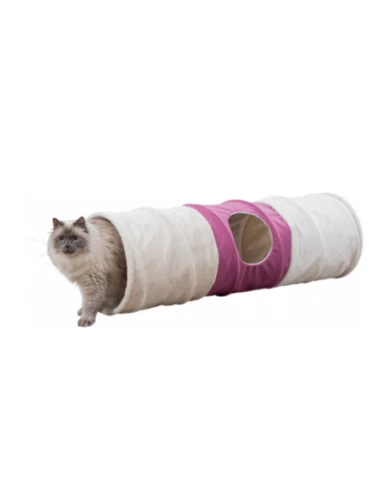 tunnel di gioco XXL. Gioco per gatti . Particolarmente adatto per gatti di grossa taglia peluche/tessuto (poliestere) lamina frusciante cucita con 3 ingressi. Misura cm 35x 115 cm . colore rosa e beige